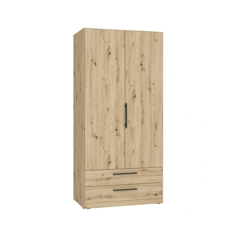 Dwudrzwiowa szafa z szufladami CADIXO Dąb Artisan to stylowy i praktyczny mebel, który sprawdzi się zarówno w sypialni, garderobie, jak i przedpokoju. Jej funkcjonalne wnętrze składa się z górnej półki, drążka na ubrania oraz dwóch pojemnych szuflad, co umożliwia wygodne przechowywanie odzieży i dodatków. Neutralny, ciepły dekor Dąb Artisan wiernie odwzorowuje strukturę naturalnego drewna, nadając wnętrzu elegancki i przytulny charakter. Dzięki uniwersalnemu designowi szafa doskonale prezentuje się jako samodzielny mebel lub w zestawieniu z innymi elementami kolekcji CADIXO.