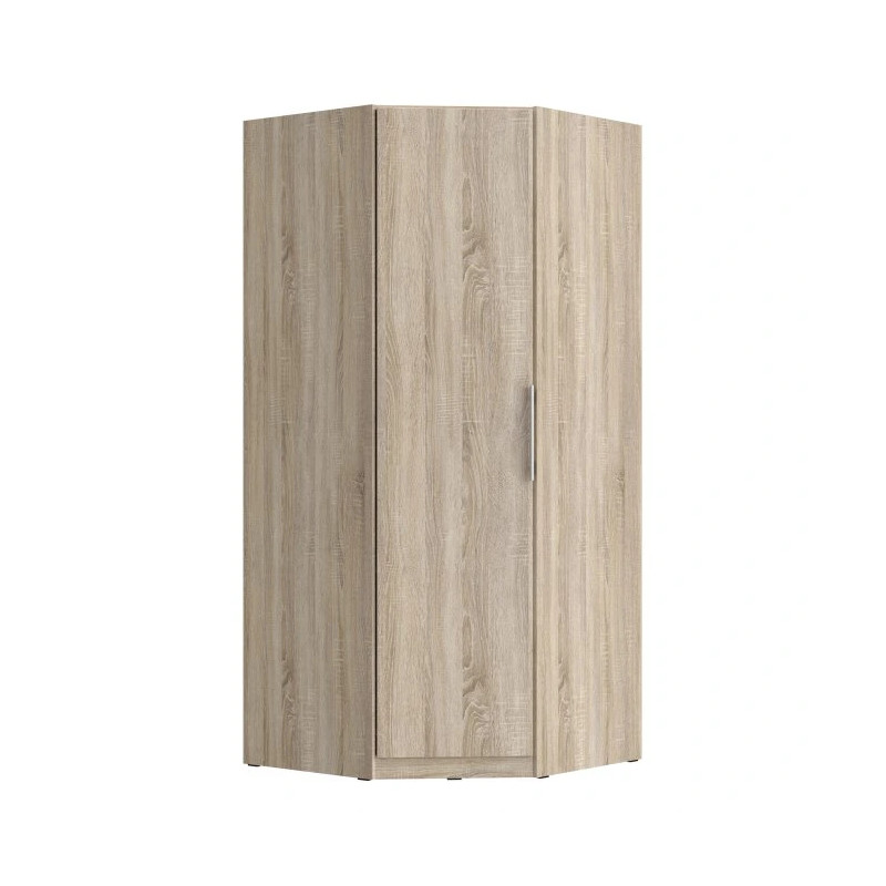 Narożna szafa z półkami CADIXO Dąb Sonoma to wyjątkowo funkcjonalny mebel, który umożliwia efektywne zagospodarowanie przestrzeni w narożnikach pomieszczeń. Jej wnętrze zapewnia dużą pojemność dzięki pięciu półkom (w tym dwóm z regulacją wysokości) oraz drążkowi na ubrania. To doskonałe rozwiązanie do przechowywania odzieży, pościeli czy akcesoriów. Elegancki dekor Dąb Sonoma z realistycznym usłojeniem nadaje szafie naturalny i przytulny wygląd, który harmonijnie wpisuje się w różne style aranżacyjne. Dzięki swojej formie mebel może stanowić samodzielny element wyposażenia lub zostać połączony z innymi szafami z kolekcji CADIXO, tworząc spójny i funkcjonalny zestaw do sypialni lub garderoby.