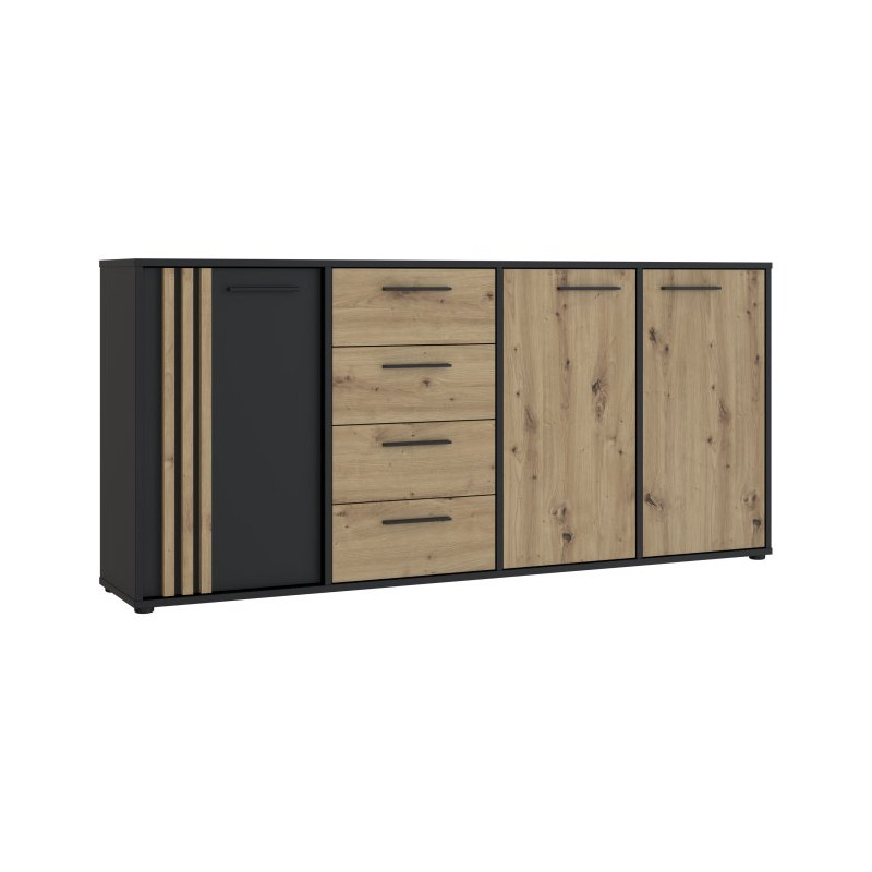 Szeroka komoda Cardigan CDGK241 czarny/dąb artisan
