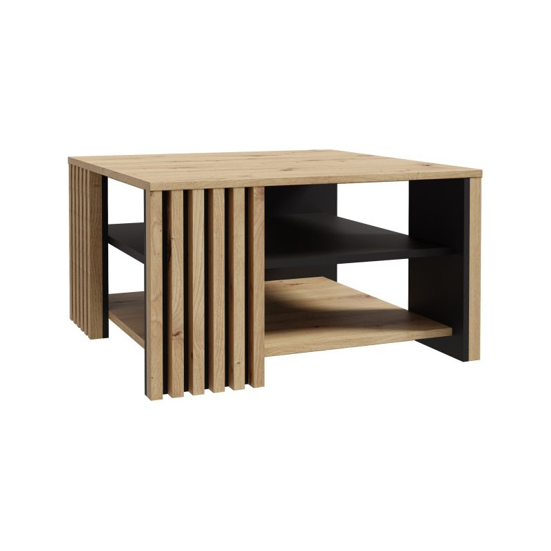 Stolik kawowy z lamelami 80x80 cm Cardigan CFTT5150 czarny/dąb artisan