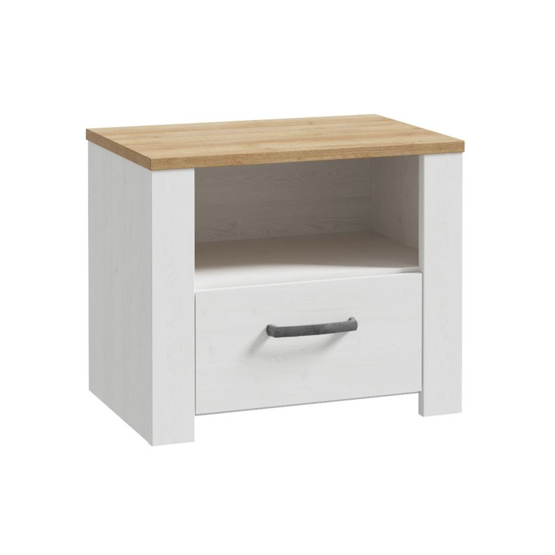 Wyposażona w pojemną szufladę oraz otwartą przestrzeń, szafka oferuje wygodne miejsce na przechowywanie książek, drobiazgów czy akcesoriów potrzebnych tuż przy łóżku. Solidna konstrukcja i staranne wykończenie gwarantują trwałość oraz komfort codziennego użytkowania, czyniąc szafkę nocną CHISBURY funkcjonalnym i estetycznym elementem wyposażenia sypialni.