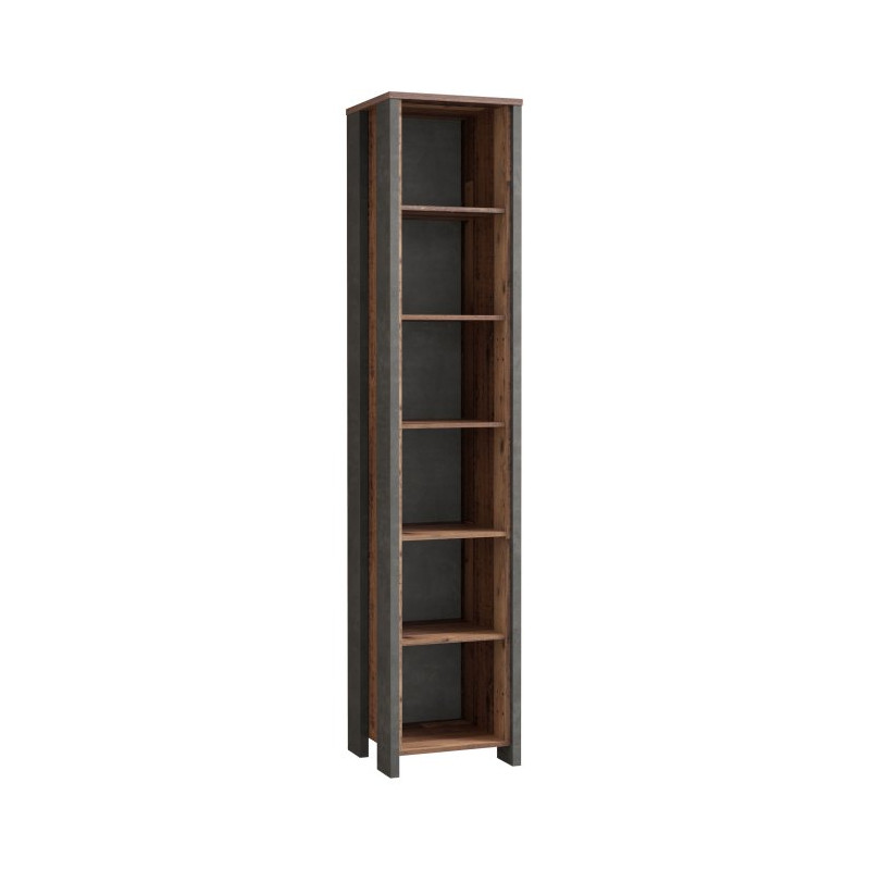 Wysoki regał Clif CLFR715 to propozycja dla tych, którzy lubią wnętrza z charakterem i nieoczywistą formą. Funkcjonalny układ półek przyciąga wzrok i nadaje aranżacji nowoczesnej dynamiki, jednocześnie zachowując loftowy, lekko surowy klimat. Dekor inspirowany postarzałym drewnem wprowadza do wnętrza ciepło i autentyczność, dzięki czemu regał staje się nie tylko praktycznym meblem, ale też wyrazistym elementem dekoracyjnym.