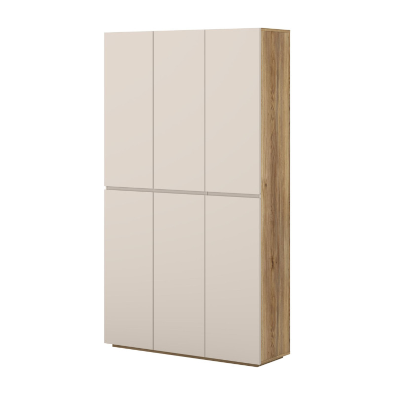 Szeroka bryła o wysokości ponad jednego metra pozwala efektywnie wykorzystać przestrzeń ściany, zapewniając dużą powierzchnię przechowywania bez konieczności zajmowania nadmiernej przestrzeni na podłodze. Sześć symetrycznie rozmieszczonych frontów ułatwia logiczny podział wnętrza na funkcjonalne strefy i szybkie odnajdywanie potrzebnych przedmiotów.