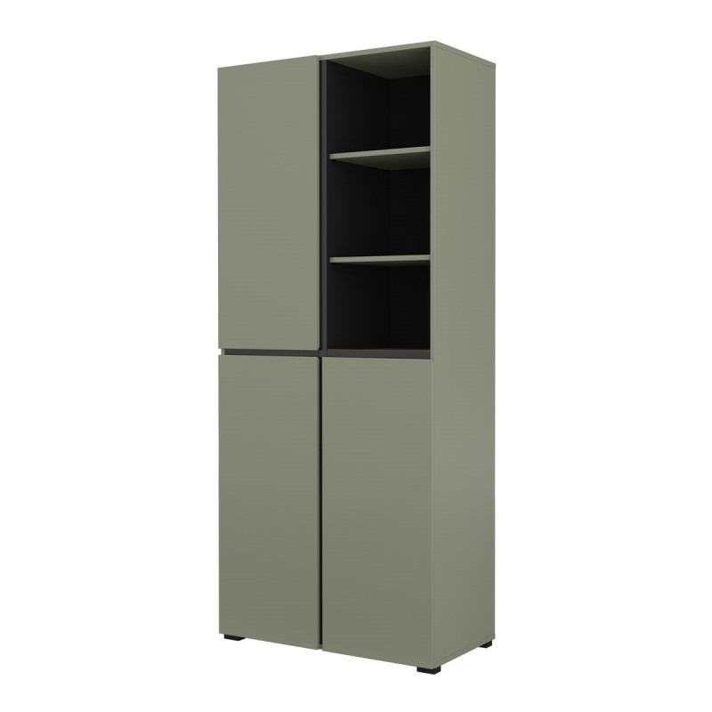 Szafa Cross S 3D typ 88 zgaszona zieleń Helvetia Wieruszów to subtelna, ale efektowna propozycja do wnętrz, w których zależy Ci na kolorze i harmonii. Stonowana zieleń z czarnymi detalami tworzy elegancki i wyważony styl.