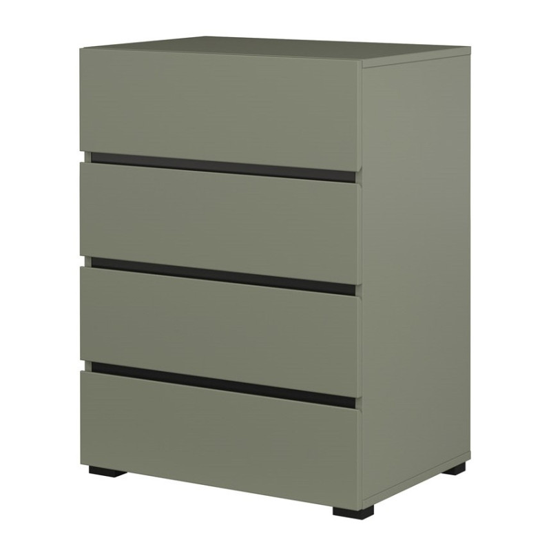 Komoda Cross S 4S typ 27 zgaszona zieleń Helvetia Wieruszów to świetny wybór dla tych, którzy chcą wprowadzić do wnętrza delikatny, modny kolor z nutą elegancji. Zgaszona zieleń harmonizuje z neutralnymi barwami i naturą, tworząc przytulną atmosferę.