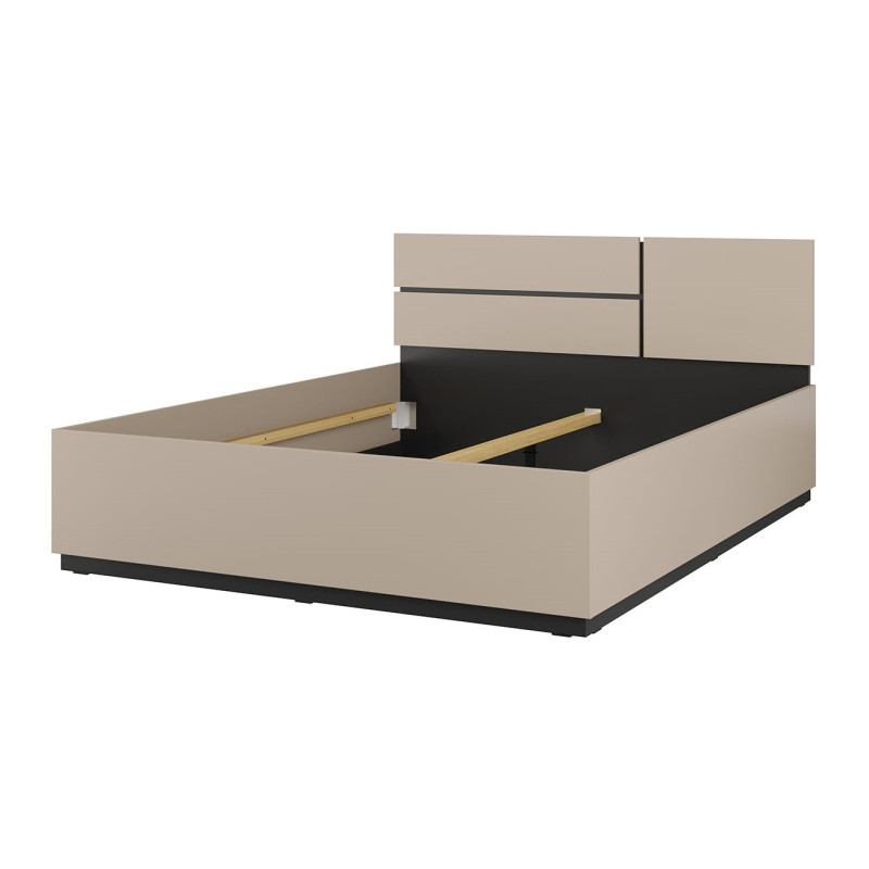 Model nie zawiera stelaża ani pojemnika na pościel – należy je dokupić osobno. Zagłówek z wyborem strony zdobienia pozwala dopasować łóżko do rozkładu pomieszczenia.