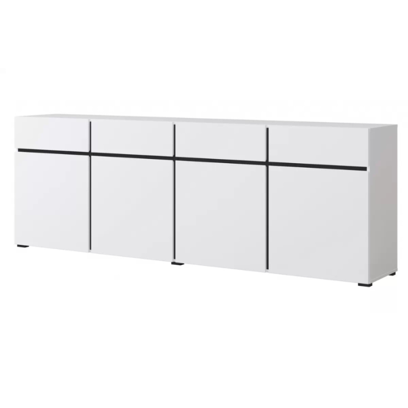 Komoda Cross 4D4S typ 25 biały Helvetia Wieruszów to połączenie minimalistycznego designu z maksymalną funkcjonalnością. Jasny kolor wprowadza lekkość do wnętrza, a kontrastujące czarne wstawki dodają nowoczesnego charakteru.