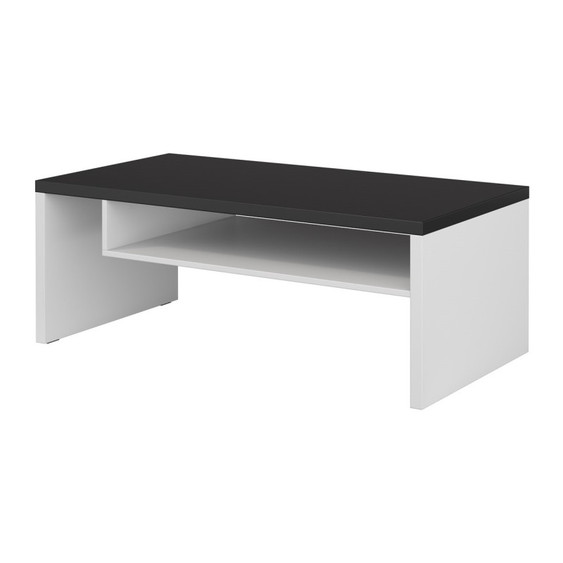 Stolik kawowy Cross typ 99 z kolekcji Cross marki Helvetia w kolorystyce front biały/czarny oraz korpus biały to połączenie nowoczesnej prostoty i funkcjonalnych rozwiązań. Jego geometryczna bryła z prostokątnym blatem oraz praktyczną półką świetnie sprawdza się w przestrzeniach utrzymanych w stylu minimalistycznym. Czarny blat dodaje meblowi wyrazistości, podczas gdy biały korpus i nogi wprowadzają lekkość i świeżość do wnętrza. To idealna propozycja dla tych, którzy cenią subtelną elegancję z nutą nowoczesności.