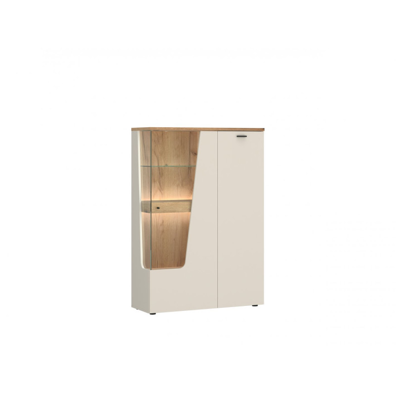 W salonie stanie się sceną dla szkła, ceramiki i dekoracji, w jadalni podkreśli rytuały codziennych posiłków, a w gabinecie pomoże uporządkować książki i akcesoria. Neutralna stylistyka oraz prostota formy sprawiają, że witryna bez trudu wpisuje się w różne aranżacje — od naturalnych, stonowanych wnętrz po nowoczesne, miejskie przestrzenie. To mebel, który łączy estetykę z praktycznością.