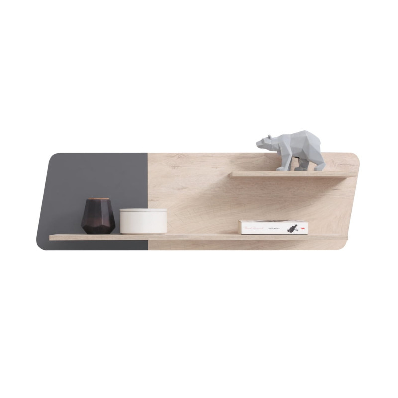 Półka wisząca Delta to subtelny, a zarazem funkcjonalny element wystroju pokoju młodzieżowego. Dzięki minimalistycznej formie doskonale sprawdza się jako miejsce na książki, dekoracje czy pamiątki, wprowadzając porządek i estetykę. Zestawienie dębu i antracytu nadaje jej nowoczesnego charakteru, który harmonijnie komponuje się z pozostałymi meblami z kolekcji Delta. Półka nie przytłacza przestrzeni, a jej solidne wykonanie gwarantuje trwałość przez lata. To detal, który łączy praktyczność z elegancją, sprawiając, że wnętrze staje się bardziej uporządkowane i stylowe.