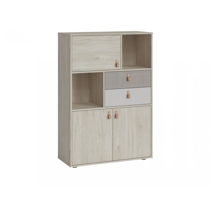Duża komoda nie musi sprawiać wrażenie zbyt masywnej i ciężkiej. Komoda z kolekcji Denim wyróżnia się ogromną pojemnością, nowoczesnymi rozwiązaniami, jasną, uniwersalną i ponadczasową kolorystyką oraz wysoką jakością wykonania. Trwały mebel, wykonany z płyty wiórowej laminowanej w odcieniu