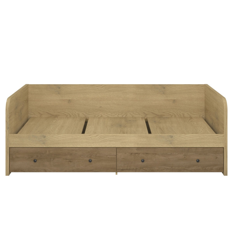 Łóżko DENZEL 90 z 2 szufladami to praktyczny mebel do pokoju młodzieżowego, który łączy miejsce do snu z dodatkową przestrzenią do przechowywania. Prosta forma, wyraziste dekory drewna i funkcjonalne szuflady sprawiają, że model dobrze wpisuje się w potrzeby codziennego użytkowania. To łóżko młodzieżowe 90x200 z szufladami, które pomaga lepiej wykorzystać dostępną przestrzeń.