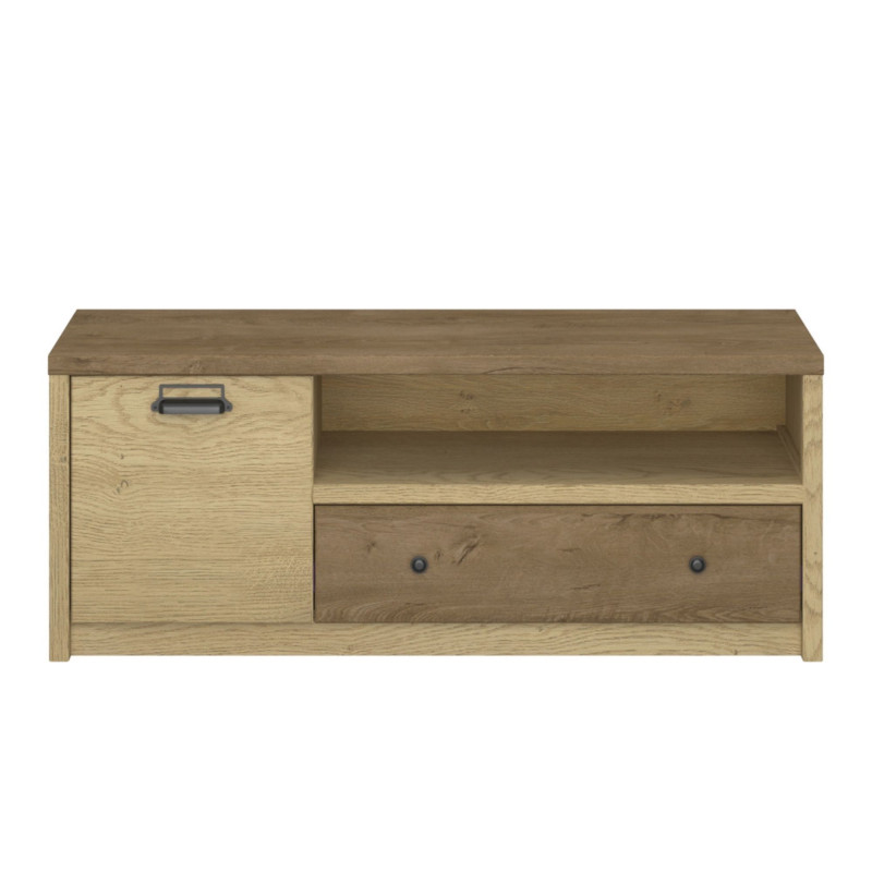 Szafka RTV DENZEL 125 to mebel zaprojektowany z myślą o wygodnej organizacji strefy telewizyjnej. Blat o szerokości 125,5 cm, praktyczna szuflada i zamykana szafka tworzą funkcjonalną bazę pod sprzęt, akcesoria oraz przedmioty, które chcesz przechowywać poza zasięgiem wzroku. To nowoczesna szafka pod telewizor do salonu lub pokoju młodzieżowego.