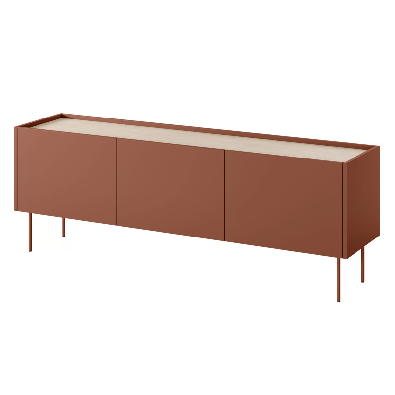 Zastanawiasz się, jak w pełni wykorzystać przestrzeń w swoim salonie, nie rezygnując z eleganckiego designu? Szafka RTV Desin o długości 170 cm to idealne rozwiązanie, które łączy nowoczesność z funkcjonalnością. Jej matowy korpus harmonijnie współgra z blatem w kolorze dębu nagano, tworząc stylowy akcent w każdym wnętrzu. Metalowe nogi nie tylko dodają stabilności, ale także podkreślają minimalistyczny charakter mebla.