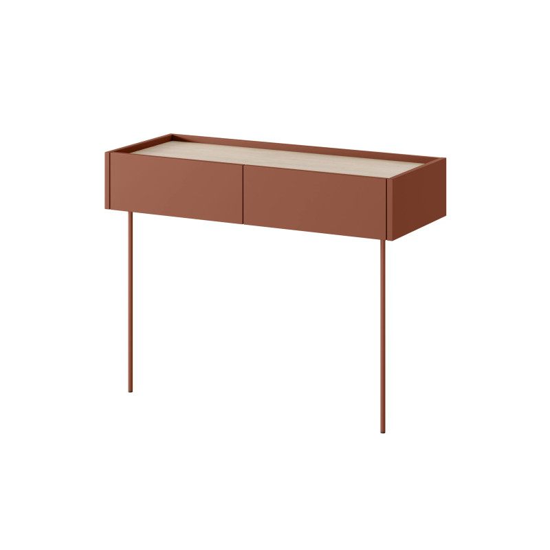 Szukasz mebla, który połączy w sobie praktyczność i styl? Konsola / toaletka Desin to doskonałe rozwiązanie, które spełni Twoje oczekiwania. Jej estetyka jest nie do przecenienia – matowy czerwony kolor w połączeniu z dębowym blatem nagano nadaje jej elegancji i nowoczesnego wyglądu, jednocześnie wprowadzając do wnętrza ciepło i przytulność.