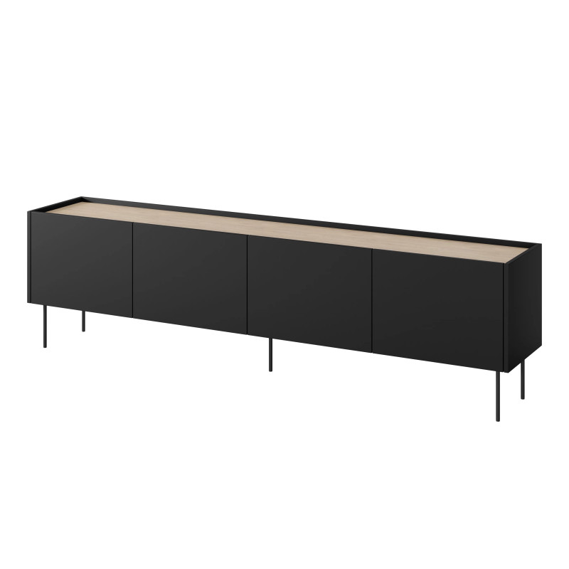 Zastanawiasz się, jak w pełni wykorzystać przestrzeń w swoim salonie, nie rezygnując z eleganckiego designu? Szafka RTV Desin o długości 220 cm to idealne rozwiązanie, które łączy nowoczesność z funkcjonalnością. Jej matowy korpus harmonijnie współgra z blatem w kolorze dębu nagano, tworząc stylowy akcent w każdym wnętrzu. Metalowe nogi nie tylko dodają stabilności, ale także podkreślają minimalistyczny charakter mebla.