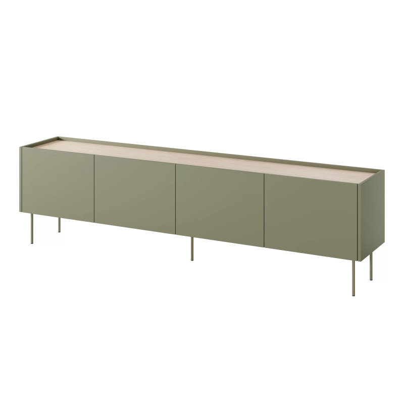 Zastanawiasz się, jak w pełni wykorzystać przestrzeń w swoim salonie, nie rezygnując z eleganckiego designu? Szafka RTV Desin o długości 220 cm to idealne rozwiązanie, które łączy nowoczesność z funkcjonalnością. Jej matowy korpus harmonijnie współgra z blatem w kolorze dębu nagano, tworząc stylowy akcent w każdym wnętrzu. Metalowe nogi nie tylko dodają stabilności, ale także podkreślają minimalistyczny charakter mebla.