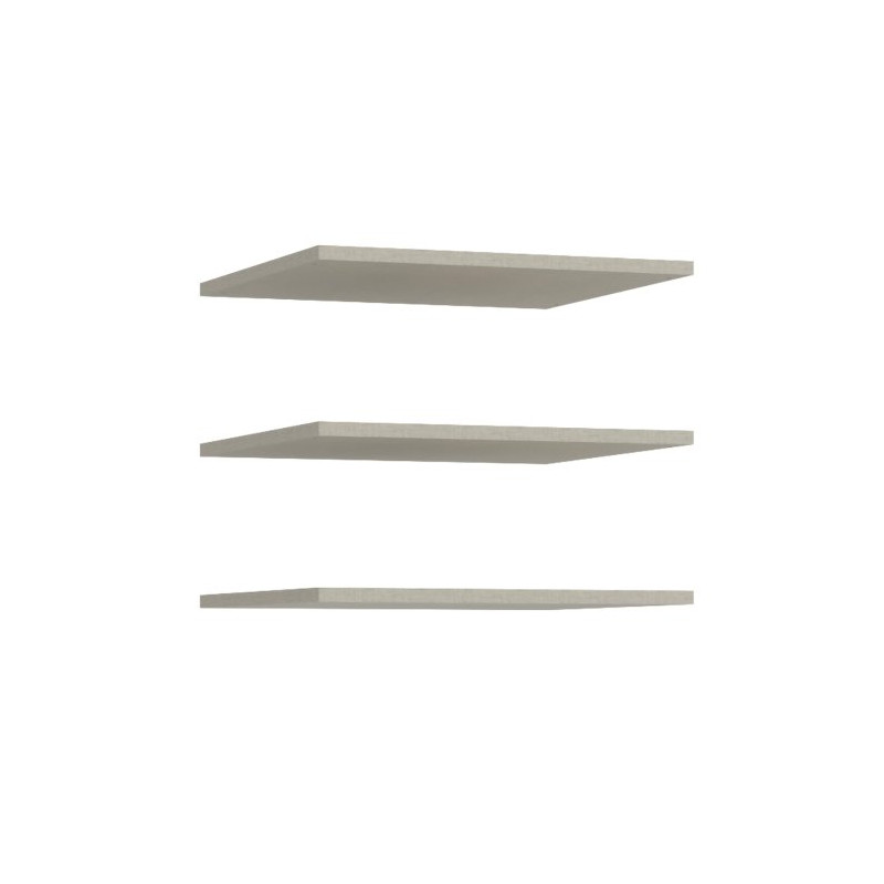 Trzy praktyczne półki, które stanowią idealne uzupełnienie mebli garderobianych i szaf, pomagając lepiej zorganizować przestrzeń do przechowywania. Dzięki uniwersalnemu designowi i neutralnemu odcieniowi szarości półki łatwo dopasujesz do różnych stylów wnętrz, a ich szerokość i solidne wykonanie z płyty meblowej sprawiają, że świetnie sprawdzają się przy segregowaniu odzieży, dodatków czy akcesoriów.