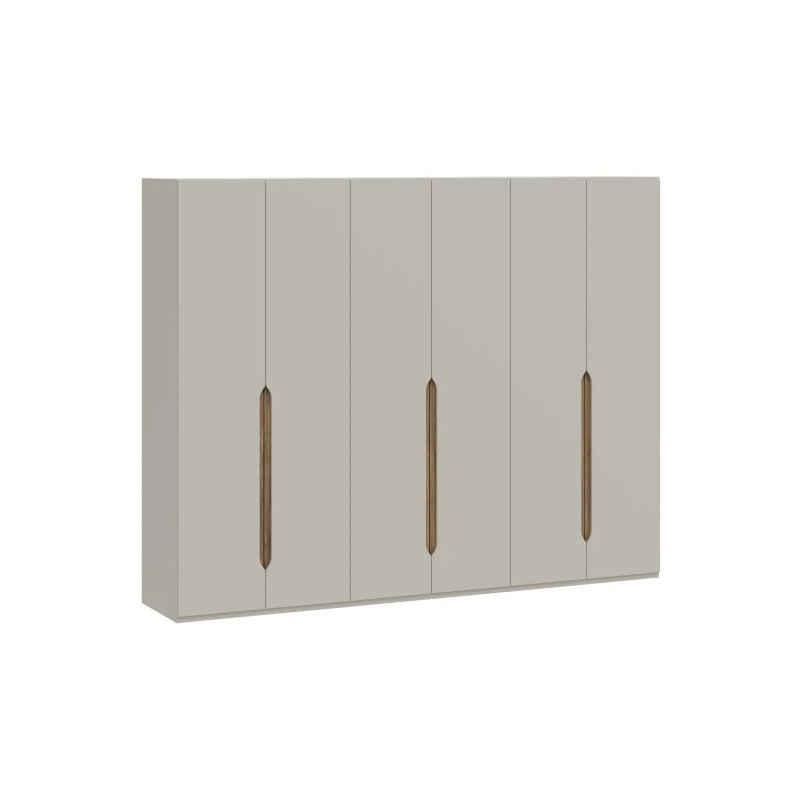 Duża szafa EDWAL 05 to idealny wybór dla osób ceniących sobie nowoczesny design, funkcjonalność i porządek w sypialni. Jej minimalistyczna forma w eleganckim beżowym kolorze została przełamana efektownymi wstawkami w dekorze Dąb Mauvella, które nadają wnętrzu przytulności i stylu. Szafa została wyposażona w 3 drążki na wieszaki oraz 3 szerokie półki, co pozwala na wygodne przechowywanie różnorodnych elementów garderoby. Dzięki możliwości dokupienia kompletu 3 dodatkowych półek, z łatwością zwiększysz jej funkcjonalność, dostosowując wnętrze do swoich potrzeb.