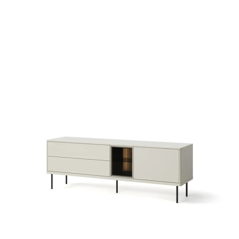 Szafka RTV EP-06 z kolekcji EPIRO to stylowy i praktyczny mebel, który doskonale dopełni aranżację nowoczesnego salonu. Jej elegancka kolorystyka, łącząca ciepły odcień kaszmiru z ciemnymi, matowymi wstawkami, wprowadza do wnętrza przytulność i wyrafinowany charakter. Fronty o subtelnym wykończeniu i minimalistyczne uchwyty podkreślają nowoczesny styl, a precyzyjne wykonanie gwarantuje trwałość i wysoką jakość mebla.