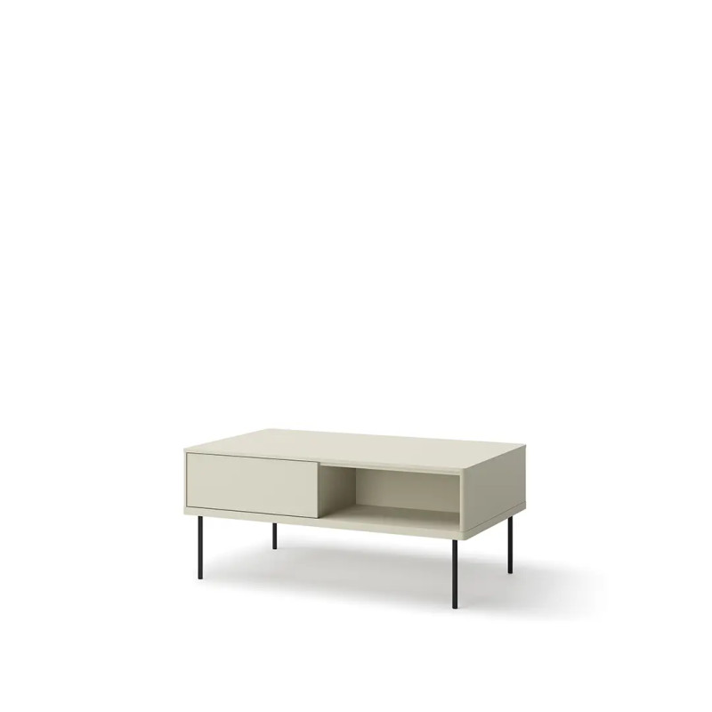 Stolik został zaprojektowany z myślą o codziennych potrzebach użytkowników. Wyposażony w jedną pojemną szufladę z systemem prowadnic push to open, zapewnia ciche i płynne zamykanie, a także wnękę, która może służyć jako dodatkowa przestrzeń na drobne przedmioty. Wymiary stolika sprawiają, że jest on odpowiedni do większości salonów, oferując przestronność bez zajmowania zbyt wiele miejsca.