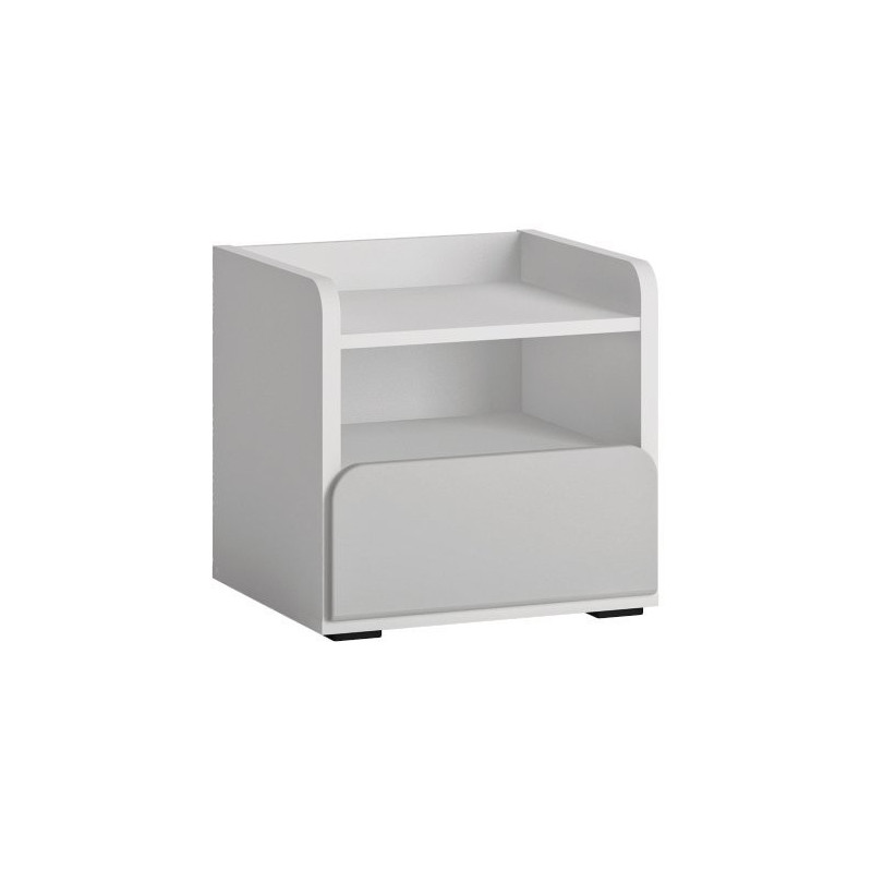 Niezwykle interesującym akcentem, który podkreśla walory estetyczne szafki nocnej, jest delikatnie zaokrąglony front szuflady, który subtelnie kontrastuje z prostymi liniami całego mebla.