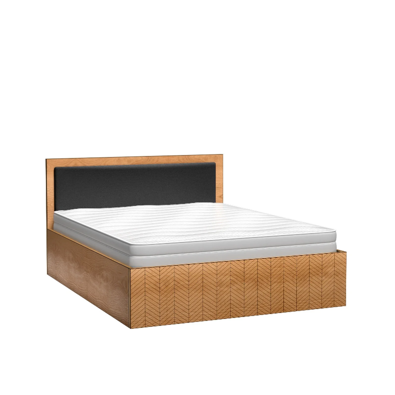 Łóżko z kolekcji Fonti to niezwykle eleganckie i funkcjonalne rozwiązanie, które doskonale uzupełni aranżację każdej sypialni. Kolor dąb karmel oraz charakterystyczny wzór w jodełkę na frontach nadaje łóżku wyjątkowego uroku i klasy.