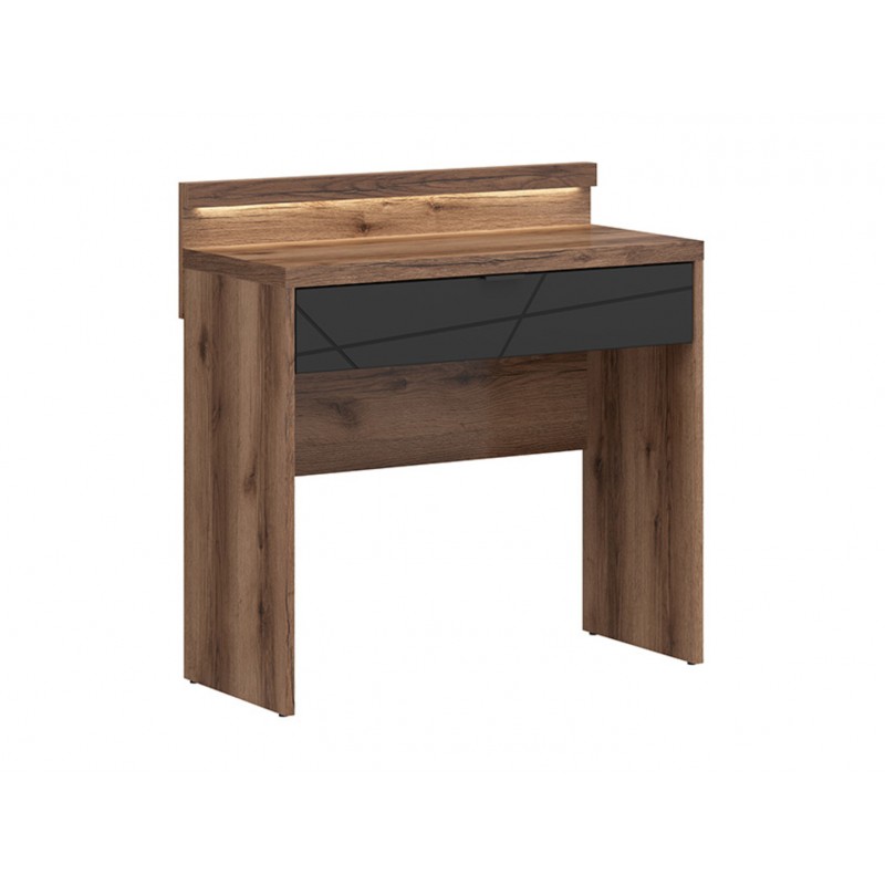 Dodatkowym atutem toaletki Forn jest szuflada z cichym domykiem oraz solidnym, metalowym uchwytem. Pogrubiony blat to funkcjonalne miejsce na którym poukładasz najpotrzebniejsze przedmioty. Frezowane wzory dodają całemu produktowi atrakcyjności.