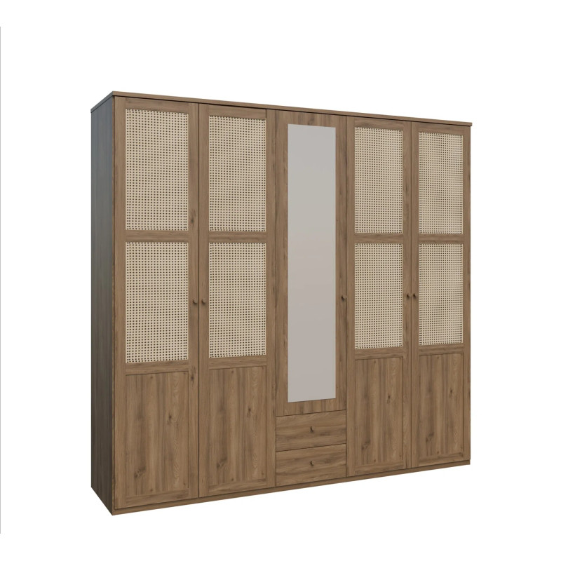 Szafa z lustrem 220 cm GLKS952 dąb valencia/rattan naturalny