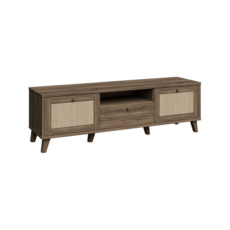 Szafka rtv na nóżkach 160 cm Glenkeen GLKT132 dąb valencia/rattan naturalny