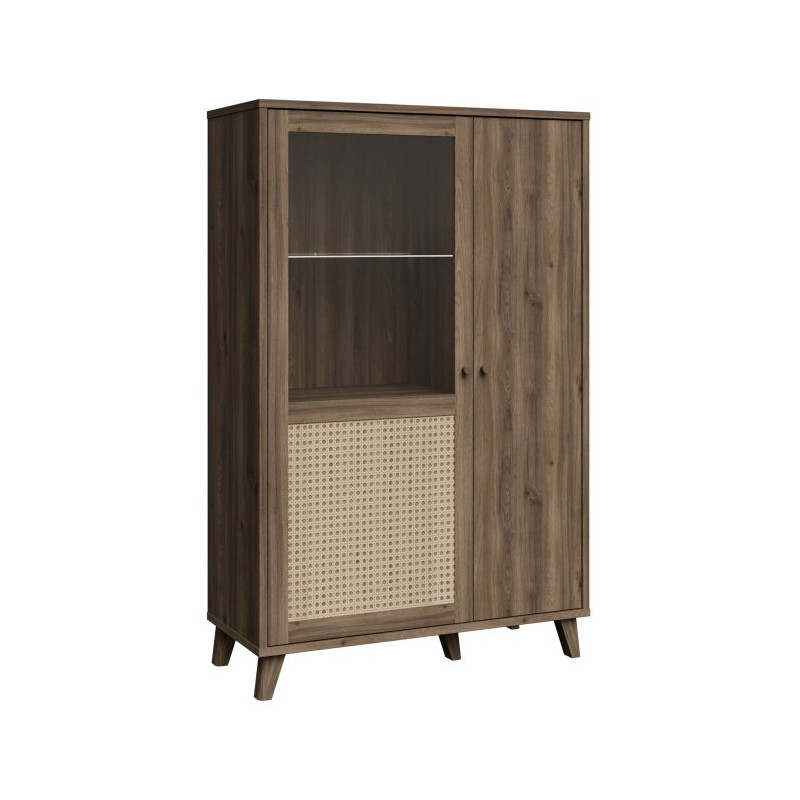 Witryna 100 cm Glenkeen GLKV522L dąb valencia/rattan naturalny