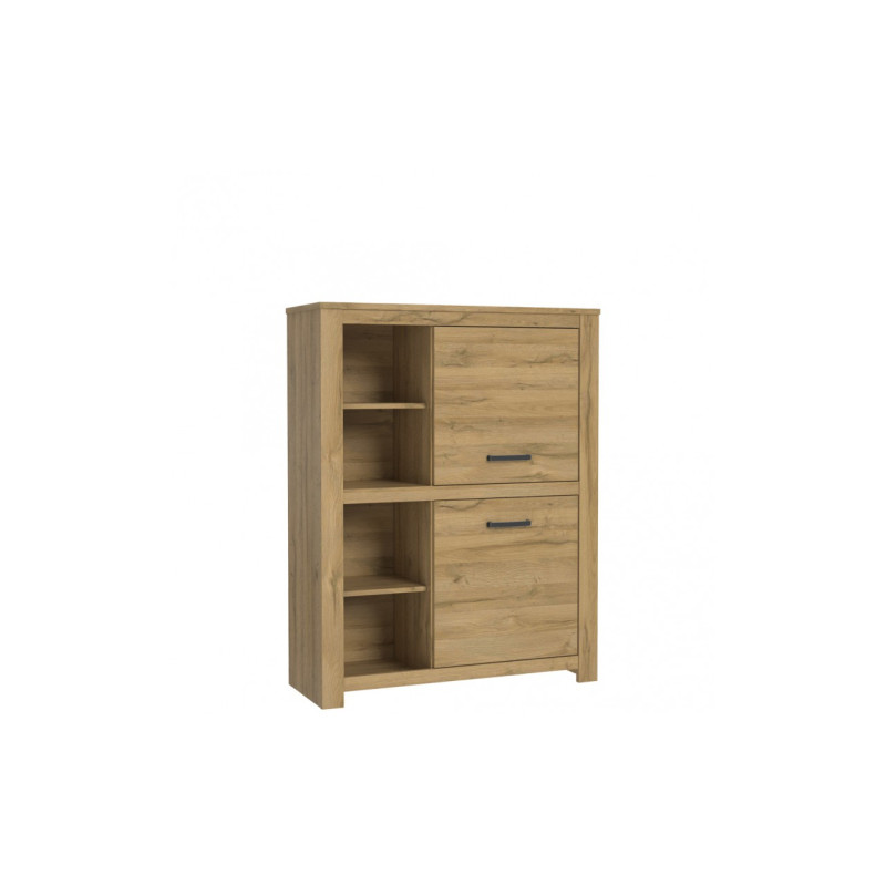 Postarzany to nowa propozycja ze względu na zastosowanie jednocześnie powierzchni zamkniętych i otwartych. Regał posiada 4 półki odkryte oraz 2 zamykane szafki, co pozwala go wykorzystać do różnych celów i w różnych pomieszczeniach, moze posłużyć jako regał do pokoju dziennego oraz regał do jadalni