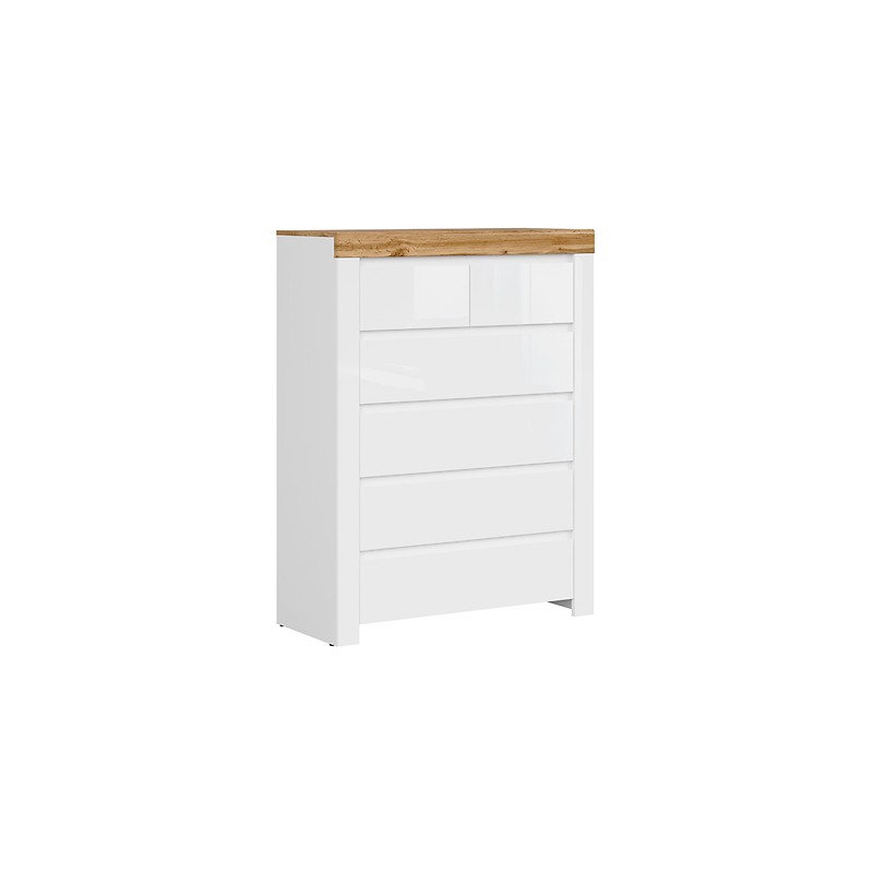 - Brakuje miejsca na bieliznę, biżuterię lub t-shirty? Z pomocą przychodzi wysoka komoda Holten. Wyposażona w 6 praktycznych szuflad ułatwi organizację przechowywanej odzieży i dodatków.