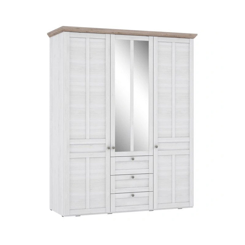 Szafa ubraniowa Iloppa łączy miękką estetykę klasyki z funkcjonalnością, której oczekujesz na co dzień. Jasny Dąb Śnieżny z akcentem Dąb Nelson rozjaśnia wnętrze i podkreśla delikatne frezowania oraz ramowe fronty. Przemyślany układ z półkami, drążkiem i 3 szufladami sprawia, że bielizna, koszule i dodatki mają swoje miejsce, a porządek utrzymuje się niemal sam. Metalowe uchwyty dodają elegancji, a prowadnice kulkowe wspierają komfort użytkowania. Konstrukcja z płyty meblowej, fronty w technologii ramka MDF + płycina i obrzeża ABS przekładają się na trwałość, której możesz zaufać. To znakomity wybór do sypialni lub garderoby, zwłaszcza tam, gdzie liczy się lekkość wizualna i harmonijna, ponadczasowa kolorystyka.