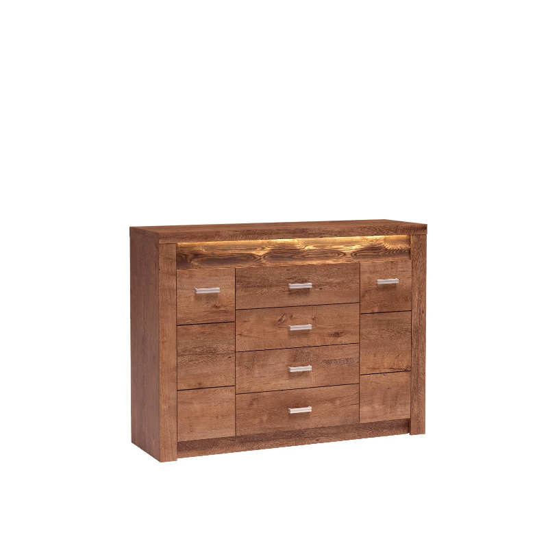 Opcja dodatkowa, jaką jest oświetlenie LED, nadaje meblowi jeszcze większej atrakcyjności i funkcjonalności. Komoda dostępna jest w trzech różnych wybarwieniach, co pozwala dopasować ją do każdego wnętrza, niezależnie od jego stylu i kolorystyki.