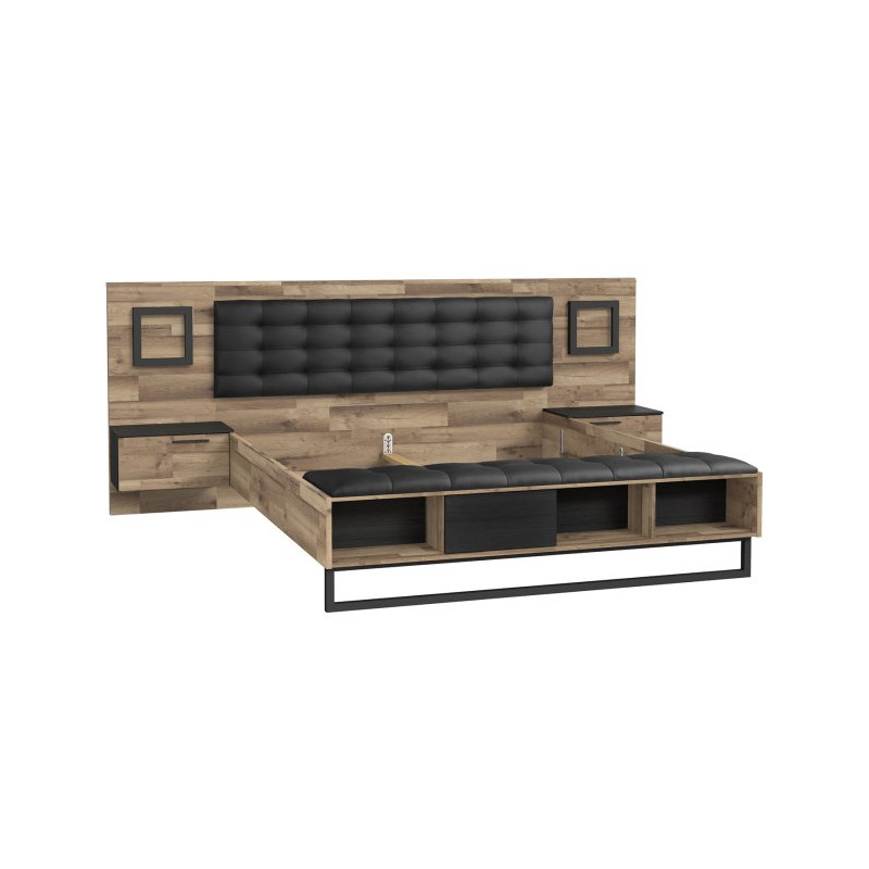Łóżko z oświetleniem 180x200 cm Jakobina JKBL1181B dąb klepkowy/dąb czarny