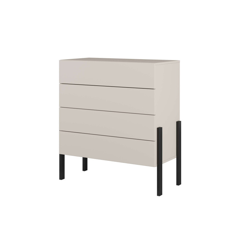 Komoda 4S Jukon S to funkcjonalny mebel do sypialni, garderoby lub pokoju młodzieżowego, który pomaga wygodnie uporządkować codzienne rzeczy. Cztery szuflady zapewniają przejrzysty podział przechowywanych przedmiotów, dzięki czemu łatwiej utrzymać porządek i szybko odnaleźć potrzebne elementy garderoby, bieliznę czy domowe akcesoria. Bryła w modnym kolorze kaszmir prezentuje się lekko i elegancko, a przy tym dobrze wpisuje się w nowoczesne, stonowane wnętrza.