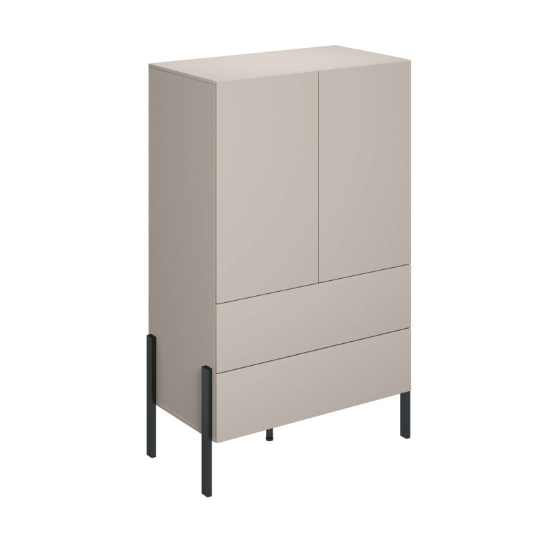 Kolor kaszmir nadaje bieliźniarce nowoczesny, subtelny wygląd i sprawia, że bryła prezentuje się lekko mimo swojej wysokości. Tego typu mebel dobrze uzupełnia większą szafę lub może pełnić rolę samodzielnego miejsca do przechowywania w mniejszych wnętrzach. W praktyce sprawdzi się do bielizny, ubrań składanych, ręczników, pościeli czy dodatków, które warto mieć pod ręką, ale poza widokiem.