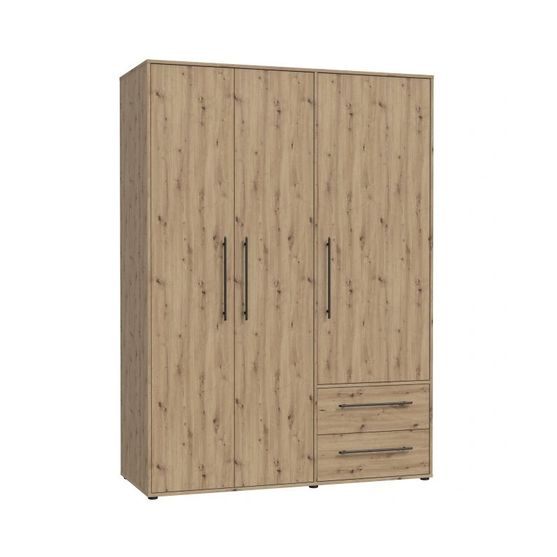 Trzydrzwiowa szafa MOKKARIS 145 cm w dekorze Dąb Artisan to stylowe i funkcjonalne rozwiązanie do sypialni, przedpokoju lub pokoju młodzieżowego, szczególnie we wnętrzach urządzonych w stylu skandynawskim. Naturalny odcień dębu podkreśla ciepły i przytulny charakter aranżacji, wprowadzając do przestrzeni harmonię i elegancję.