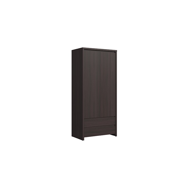 - Dwudrzwiowa szafa posiada funkcjonalną przestrzeń do przechowywania. We wnętrzu znajduje się drążek na ubrania. Dolną część mebla praktycznie zagospodarowują dwie szuflady.