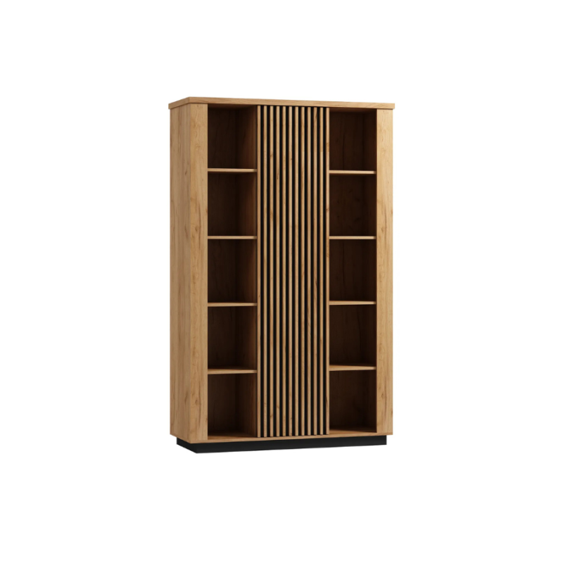 Regał Lamello posiada wiele półek co pozwala na przechowywanie różnorodnych przedmiotów, takich jak książki, ozdoby, bibeloty czy kolekcje. Jako producent mebli dbający o detale, Meble Gołąb zadbał o staranne wykończenie regału Lamello. Gładkie powierzchnie, dokładne dopasowanie elementów oraz precyzyjne wykończenia brzegów podkreślają wysoką jakość wykonania.