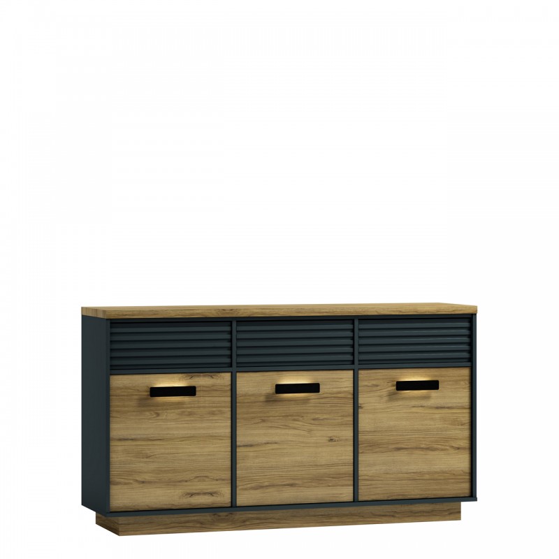 Zaprojektowana z myślą o przechowywaniu, komoda posiada trzy drzwi, za którymi kryją się półki, zapewniając wystarczająco dużo miejsca na przechowywanie różnorodnych przedmiotów. Dodatkowo, trzy szuflady stanowią doskonałe miejsce do ukrycia dekoracji lub przechowywania przedmiotów, do których chcemy mieć szybki dostęp.