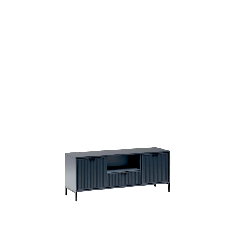 Tył szafki wykonany jest z płyty HDF, co dodatkowo wzmacnia jej konstrukcję. Metalowe nóżki o wysokości 12cm dodają lekkości całej kompozycji, jednocześnie zapewniając stabilne podparcie. System cichego domyku sprawia, że otwieranie i zamykanie szuflad i drzwi odbywa się płynnie i bez hałasu, co jest szczególnie praktyczne w codziennym użytkowaniu.