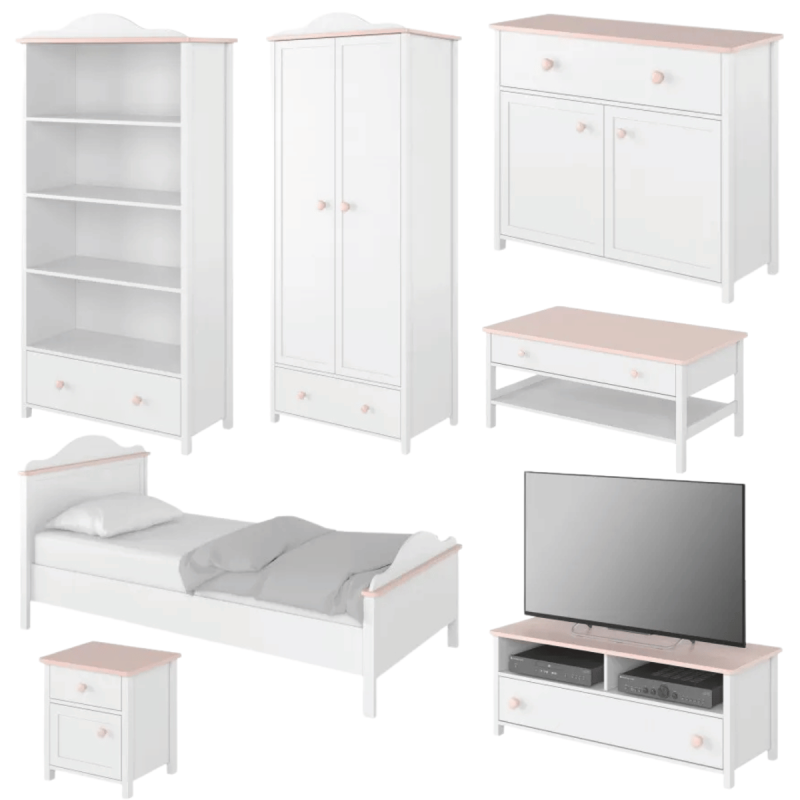Zestaw mebli dziecięcych LUNA – Biały / Różowy