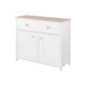 Biała komoda 110 cm dla dziewczynki z drzwiami i szufladą
