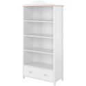 Biały regał 85 cm dla dziewczynki z półkami i szufladą