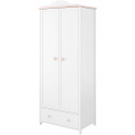 Biała dwudrzwiowa szafa do pokoju dziewczynki z drążkiem i szufladą