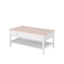 Ława Luna oferowana przez markę Lenart subtelnie wpasuje się w wystrój pokoju Twojej pociechy. Połączenie bieli z różowym blatem pokocha każda dziewczynka. Pod blatem ławy kryje się półka oraz szuflada, gdzie znajdą swoje miejsce przedmioty małej księżniczki. Całość została wykonana z wysokiej jakości płyty meblowej gwarantującej trwałość przez lata użytkowania.
