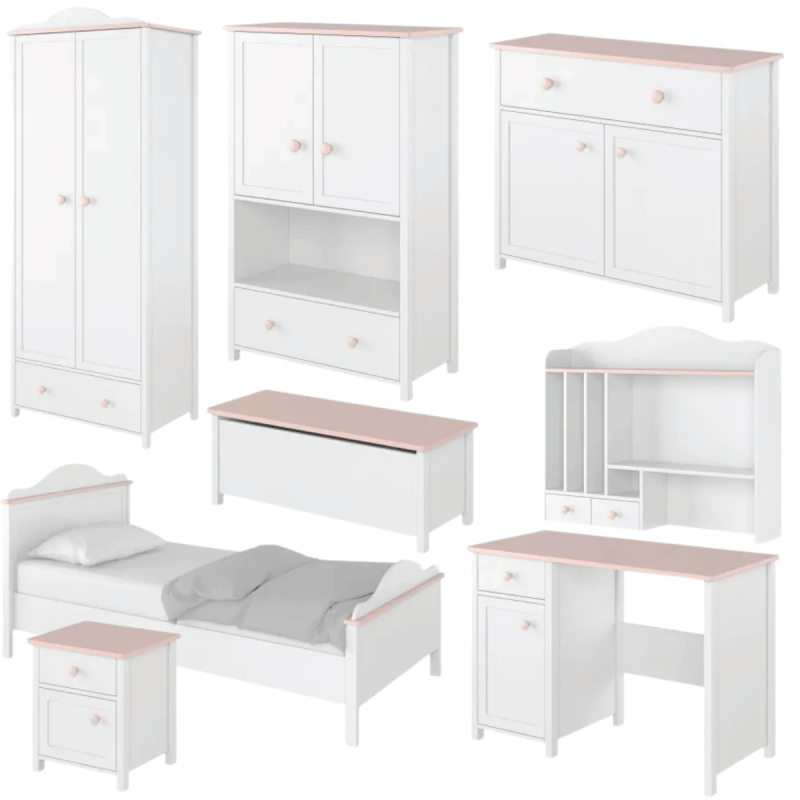 Zestaw mebli dziecięcych LUNA – Biały / Różowy