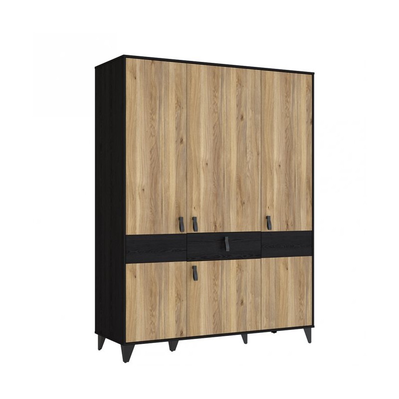 Wykonana z trwałej płyty meblowej w kontrastowym połączeniu dekorów Dąb Mauvella oraz Dąb Cabezone, szafa prezentuje się stylowo i nowocześnie. Jej minimalistyczny design doskonale komponuje się z różnymi aranżacjami wnętrz, dodając pomieszczeniu charakteru i elegancji.